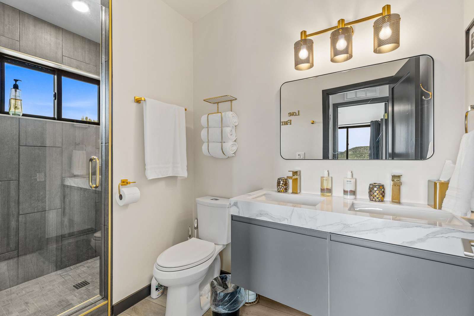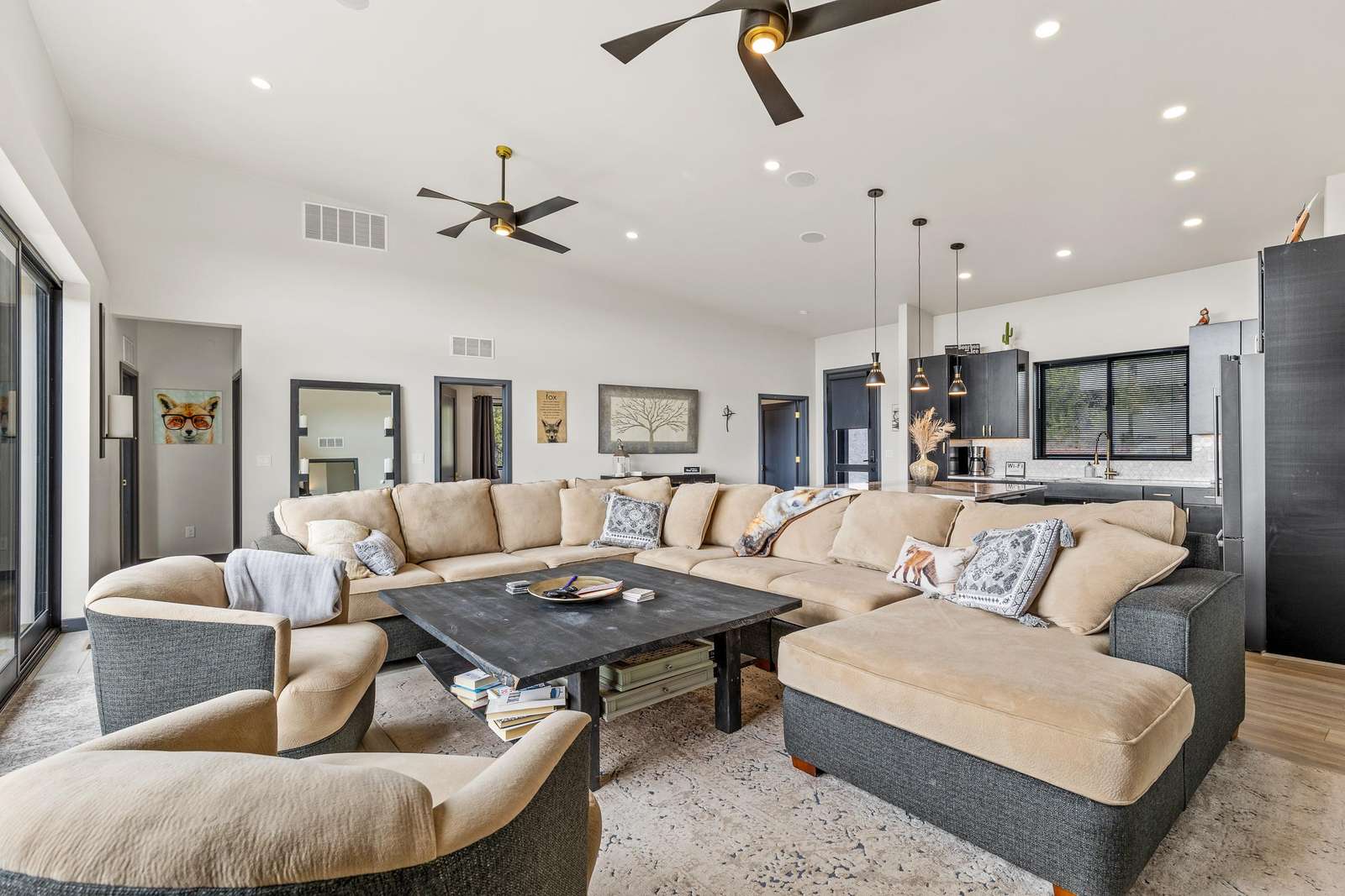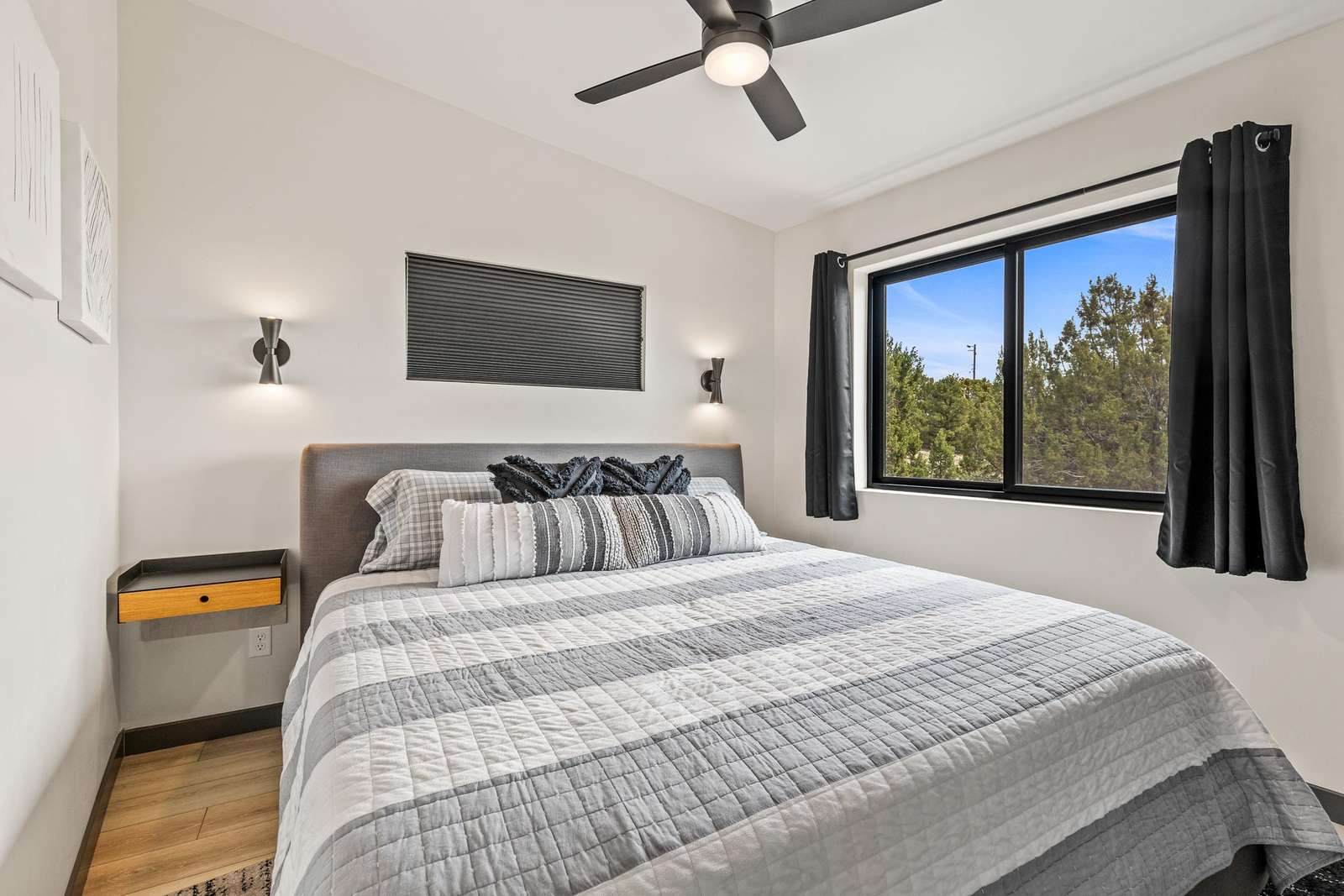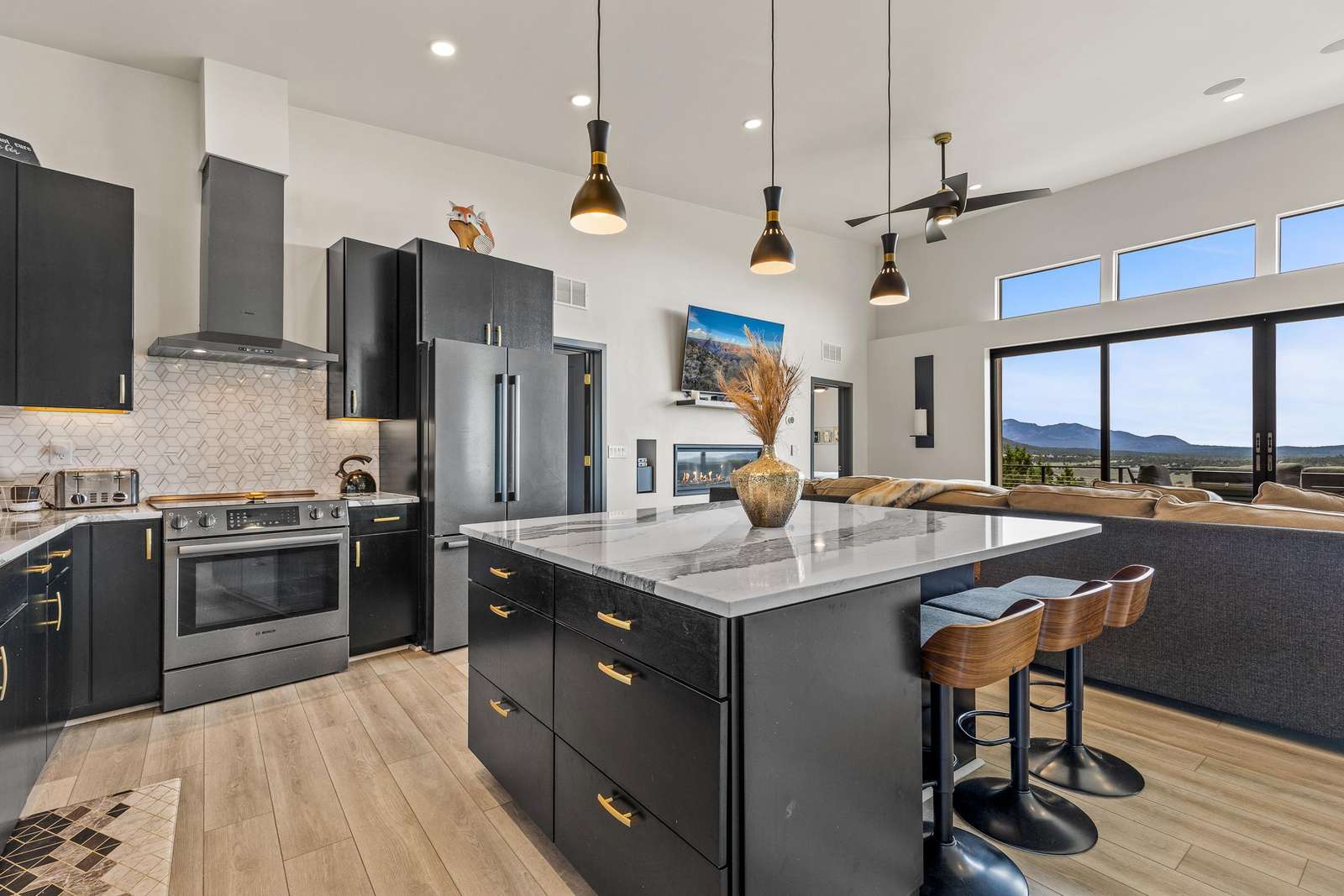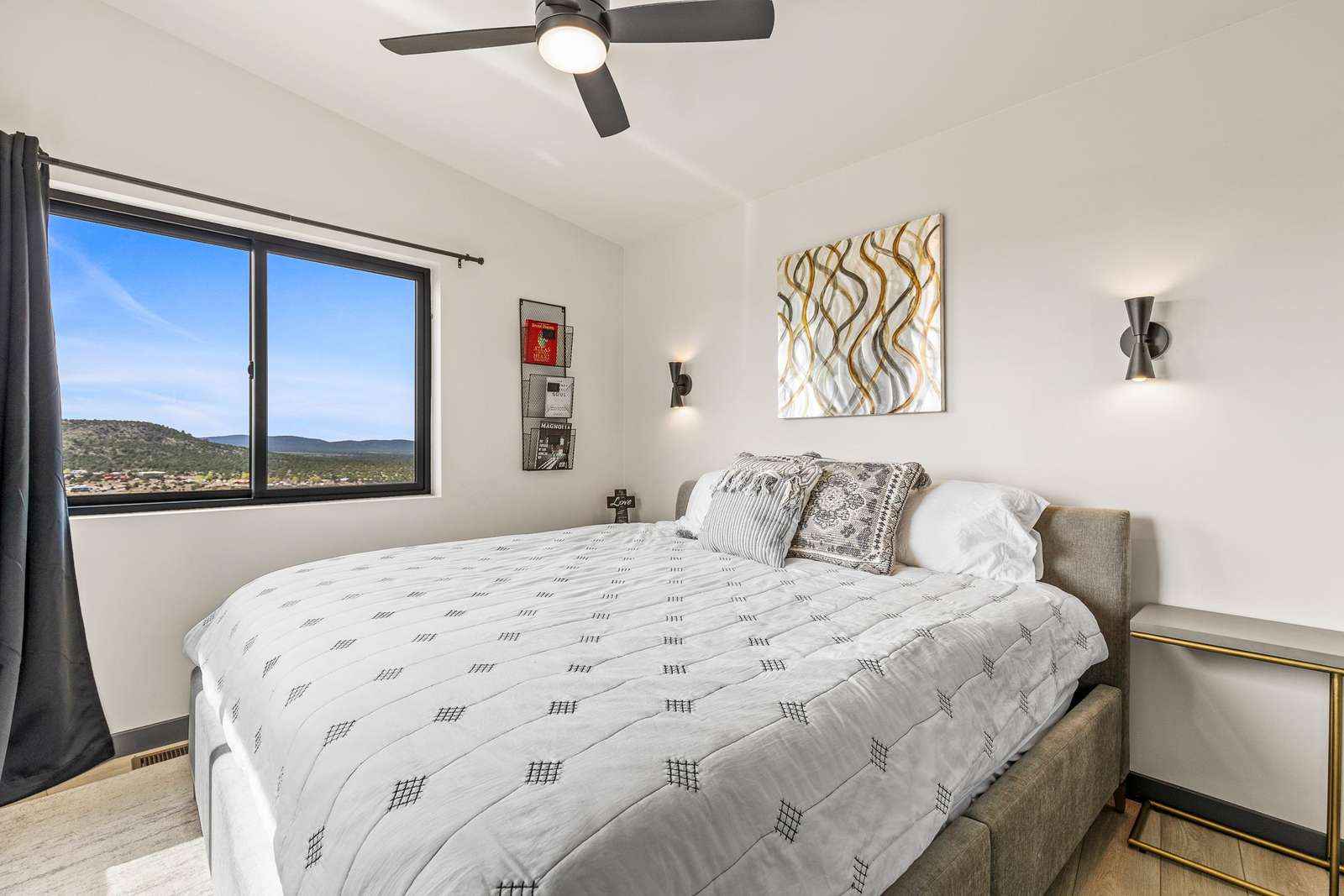 Designed for discerning adult travelers, this 4-bedroom king retreat near the Grand Canyon offers amazing views of Bill Williams Mountain from it's perch high on a hillside. The night sky from the balcony is stunning year-round. Picturesque sunsets enhance the natural beauty. With 4 king bedrooms and a welcoming great room, it’s perfect for friends or family gatherings. The linear fireplace provides warmth on chilly nights. This home is fully equipped for you to arrive and enjoy time together. This home has nothing to occupy small children.